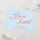 Este convite de festa de aniversário apresenta "Você está convidado" em um grande e amplo script laranja sobre um fundo azul celeste suave, com os detalhes da festa em pequeno texto negrito abaixo. É um visual divertido e confiante que parece fresco e comemorativo. Há espaço para o nome do convidado de honra, idade, data, local e informações de RSVP. É mostrado aqui como um convite de 21º aniversário, mas funciona igualmente bem para qualquer idade - ou, honestamente, qualquer celebração em que você queira que o convite se sinta um pouco especial.