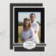 Destacar o casal celebrado com uma foto de casamento original ou uma foto de hoje neste lindo convite de festa com cartão de foto preto, branco e prata. Um texto elegante com um fundo sutil de listras de smoking com um acento de fita falsa na frente que apresenta uma grande foto do casal especial e faz uma bela apresentação para a família e convidados. Cada linha de texto é facilmente personalizada para atender perfeitamente às suas necessidades e planos de festa.