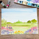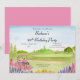 Este charmoso aquarela apresenta um campo de golfe arborizado com pinheiros e um alegre carrinho de golfe rosa, emoldurado por astilbe rosa suave e sálvia russa em flor - criando um ambiente alegre e sereno perfeito para a celebração dos 30 anos.