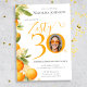 Convite de Aniversário de 30 anos com Foto de Laranja Zesty. Acenda sua celebração com nosso tema de festa de aniversário de adulto comemorando um marco com Laranja Zesty! Cheio de energia e vivacidade, este design animado prepara o cenário para uma reunião divertida. Incorpore sua foto personalizada favorita para tornar a experiência única, adicionando um toque especial à comemoração desse marco. Desde as cores vibrantes do laranja até os detalhes divertidos, cada detalhe irradia alegria e animação, este tema promete trazer uma atmosfera animada para a sua festa de aniversário que fará todos sorrirem de orelha a orelha. Prepare-se para abraçar o entusiasmo e criar memórias inesquecíveis com os entes queridos!