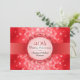Celebre o casal de aniversário de 40 anos com um convite que celebra essa conquista com estilo. Imagens bokeh cintilantes falsas espalham-se contra um fundo gradiente carmesim. A paleta de cores é vermelho rubi..tradicional para o aniversário de casamento de 40 anos. O texto principal é destacado em um ornamento segurado por uma imagem de fita escarlate. O verso revela as informações da celebração em uma imagem de fita vermelha semelhante. Disponível em cores alternativas com produtos correspondentes.