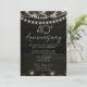 Luzes de corda e modelo de fundo de madeira. Ajustável para a festa de 40 anos, basta alterar o texto dos convites. Download digital de convite imprimível