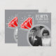 Convide amigos e familiares para uma festa especial de 40 anos de casamento de rubi ou jantar comemorativo com esses convites com duas fotos e um anel de eternidade de rubi gráfico em cinza, vermelho e branco. Personalize com suas próprias fotos do dia do casamento e uma foto atual no verso, e adicione suas próprias palavras de celebração, data e local da festa. Outros itens combinando disponíveis. Arte e design gráfico do anel original por www.mylittleeden.com no zazzle.