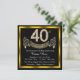 Convite de festa de 40 anos elegante com números de diamante e faixa em um fundo preto e dourado. Este lindo convite de festa de 40 anos é facilmente personalizado para o seu evento. Você pode alterar a cor do fundo. Este design impressionante funciona bem para homem ou mulher. Este é um design impresso sem diamantes reais, prata, glitter, etc.
