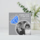 Convide amigos e familiares para uma festa especial de 45 anos de aniversário de casamento de safira ou jantar comemorativo com esses convites "então e agora" com um anel de eternidade gráfico com brilho cinza, safira azul e branco, e duas fotos. Personalizado com suas próprias fotos do dia do casamento e uma foto atual no verso, e adicione suas próprias palavras de celebração, data da festa e local. Outros itens correspondentes estão disponíveis. Arte e design gráfico original do anel por www.mylittleeden.com no Zazzle.