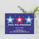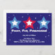 Celebre o aniversário da nação com este convite divertido e festivo. Design apresenta três estrelas em cores vermelho, branco e azul. As informações do seu partido estão definidas em fontes ousadas entre estrelas pequenas e cintilantes. Quer você esteja hospedando um CHURRASCO com fogos de artifício, piquenique ao ar livre ou anual, esses convites para o Dia da Independência certamente trarão um sorriso para o rosto do seu destinatário.