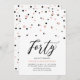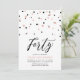 Celebre seu dia especial com este convite de festas mínimo de aniversário de 40 anos. Este design apresenta um script de na moda com letra "Quarenta" com um confete em forma de hexágono com uma combinação de cores preto e rosa dourado. Mais designs disponíveis no meu compro BaraBomDesign.