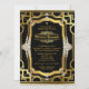 Convite de festa de aniversário em Art Déco com diamantes deslumbrantes em um rico fundo preto e dourado, glamoroso estilo Art Déco Gatsby, velho Hollywood. Este convite de festa de aniversário com tema Glamour de Velho Hollywood é facilmente personalizado adicionando os detalhes do seu evento. Este é um design impresso sem diamantes reais, etc.