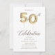 Convite elegante e divertido com um grande balão dourado 50 perfeito para celebrações de aniversário e aniversários de casamento / negócios