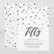 Celebre seu dia especial com este convite de festa de 50 anos minimalista. Este design apresenta um script de letra elegante "Cinquenta" com confetes em forma de hexágono com uma combinação de cores preto e dourado rosa. Mais designs disponíveis na minha loja BaraBomDesign.