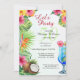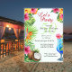 Celebre os 50 anos do seu ente querido com uma festa temática tropical usando nossos convites de aquarela deslumbrantes. Com flores havaianas, coco e um coquetel contra um fundo claro, o design irradia uma energia vibrante. "Vamos Festejar" e "50" em letra cursiva elegante definem o tom festivo, enquanto o verso promete "Comer, Beber, Dançar". Personalize facilmente todos os detalhes em uma fonte serifada clássica para criar o convite perfeito. Comece a planejar uma festa de 50 anos inesquecível hoje mesmo – encomende seus convites personalizados agora!
