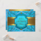 Convite de festa de 50 anos dourado turquesa para mulher.