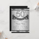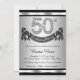 Convite de festa de 50 anos de prata com números de diamante e faixa de feliz aniversário em um fundo preto e prata. Este lindo convite de festa de 50 anos de prata é facilmente personalizado para o seu evento. Você pode alterar a cor do fundo. Este design impressionante funciona bem para homem ou mulher. Este é um design impresso sem diamantes reais, prata, brilho, etc.