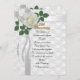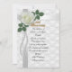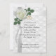 Festa de 50 anos para pais convidam design elegante em cadáver branco com fundo impresso com "50.º Aniversário" em 3D. Uma rosa branca solteiro com pérolas bordas e corações dourados ligados. Composição de imagem e ilustração para o convite de aniversário de casamento formal elegante. O texto é totalmente personalizável. Adicione suas informações ou altere-as completamente. Selecione uma fonte e cor diferentes.