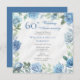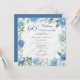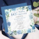 Elegante azul e branco com o Dsky Sage Green Greenery Floral Frente design de aniversário de casamento.