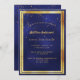 Um convite de festa de 60 anos moderno e sofisticado para homens. Um fundo azul-marinho escuro. A cor azul é irregular. Com uma moldura dourada falsa e confetes dourados espalhados, letras douradas. Modelos para as informações da sua festa.