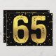 Convite personalizado para festa de 65 anos para mulheres com imagens gráficas de confetes em folha de ouro falso na borda. Texto fixo "65" moderno e chique com efeito de folha de ouro falso em um fundo preto clássico. O verso do convite é um preto elegante com bolinhas em folha de ouro falso e texto personalizável em dourado. Se precisar de ajuda para personalizar seu produto, entre em contato comigo através da minha loja e ficarei feliz em ajudar. POR FAVOR, NOTE: São imagens gráficas impressas planas - não são folhas de ouro reais.