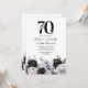 Defina o tom para uma celebração marcante com nossos convites de aniversário de 70 anos. O fundo branco clássico contrasta lindamente com os florais rústicos em preto e lilás em aquarela, tornando o convite um verdadeiro deleite visual. Combinado com um modelo de texto de celebração de aniversário de setenta anos elegante que você pode personalizar, esses convites são uma mistura perfeita de elegância e charme. Prepare-se para a festa de aniversário de 70 anos mais incrível!