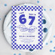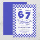 Celebre o aniversário de sete anos com uma das maiores tendências virais que as crianças adoram! Este convite de aniversário infantil inspirado no meme 67 apresenta um fundo xadrez azul escuro e branco, as icônicas mãos do meme “67” e a divertida frase “Eu tinha 6 anos, agora tenho 7”.