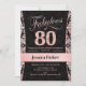 Cartão de convite elegante com brilho falso dourado rosa e diamantes. Apresenta padrão damasco e fonte manuscrita. Fabulosa aos oitenta! Design clássico perfeito para uma festa estilosa. Por favor, envie-me uma mensagem se precisar de uma idade personalizada.