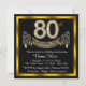 Convite de festa de 80 anos com números de diamante dourado e faixa em um fundo preto e dourado. Este lindo convite de festa de 80 anos preto e dourado é facilmente personalizado para o seu evento. Você pode alterar a cor do fundo. Este design impressionante funciona bem para homem ou mulher. Este é um design impresso sem diamantes reais, prata, glitter, etc.