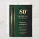 Convite Festa de 80 Anos Preto Verde com Listras Douradas