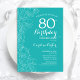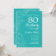 Convite de Festa de 80 Anos Turquesa Floral. Design moderno minimalista com desenhos de contorno botânico e fonte de letra script. Cartão de convite simples e moderno perfeito para uma celebração de aniversário feminina elegante. Pode ser personalizado para qualquer idade. Convites impressos da Zazzle ou modelo digital para impressão instantânea.