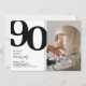 Crie memórias duradouras na sua festa de 90 anos com esses convites clássicos de aniversário em preto e branco! Com uma fonte serifada grande e ousada que destaca o número '90', uma foto do aniversariante, e um modelo moderno que é fácil de personalizar, esses convites vão capturar o espírito da ocasião. Com seu design único, esses convites exclusivos certamente vão deixar seus amigos e familiares animados para uma celebração inesquecível.