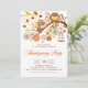 Feliz Ação de Graças | Convide convidados para o seu evento com este convite de Ação de Graças personalizável. Este convite apresenta corujas festivas, flores e folhagem em cores do outono. Personalize adicionando seus detalhes. Este convite para a Ação de Graças da coruja está também disponível em outros estoques de papelão. Itens correspondentes estão disponíveis.