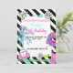 Um convite alegre e lindo no estilo vsco, com cores e elementos que são tendência para este estilo.
