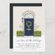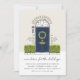 O encantador convite de festas de lar de férias apresenta um esboço de ilustração azul de marinho com arbustos verdes e uma coroa de Natal, com "nova casa para as férias" em letra chic manuscrita. Personalize com seus detalhes de celebração abaixo.