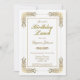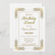 Um ornamentado elegante de convite de festas de almoço de aniversário de renda de ouro.