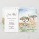 Adicione um tema de safari personalizado adorável à festa do seu menino ou menina com este convite de aniversário de animais africanos em aquarela. O convite tem girafas, zebras e leões mamãe e bebê em um fundo de savana africana. Há também um espaço para texto personalizado.