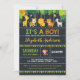 Esta design super fofa ilustra os adoráveis animais da selva (girafa, leopardo, leão, tigre, zebra e macaco) e um verde vibrante. Você pode personalizar facilmente o convite de chá de fraldas com seus detalhes. Para personalização mais avançada deste design, basta selecionar o botão "Personalizar mais". © Blue Bunny Studio