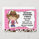Este convite de festas de vaqueira divertida do oeste mostra uma vaqueira bonita em um fundo de xadrez rosa, e texto personalizável.