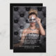 Personalize e adicione sua foto e detalhes da festa. Usei uma cobertura escura sobre a foto para que seja mais fácil ler o texto. Eu adicionei 2 camadas, mas apenas uma está ativa. Há um pequeno símbolo na extremidade da camada/linha de sobreposição que você pode clicar para ocultar ou ocultar. Fundo: fundo preto. Você pode mudar a cor.