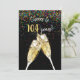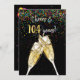 Brinde de champanhe em preto com confete colorido para o 104º convite de festa de aniversário.