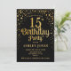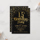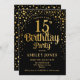Convite de aniversário 15. Design elegante em ouro preto e brilhante. Possui fonte de script na moda e confetti. Envie-me uma mensagem se precisar de idade personalizada.