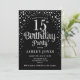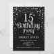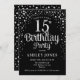 Convite de aniversário 15. Design elegante em prata brilhante e preto. Possui fonte de script na moda e confetti. Envie-me uma mensagem se precisar de idade personalizada.