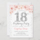 design elegante do 18º Convite de aniversário com brilho fino prateado, rosa e branco. Na moda floral com diamantes e rosas. Perfeito para uma comemoração de vidro. Envie-me uma mensagem se precisar de mais personalização.