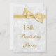 18 Convites de aniversário elegantes para garotas adolescentes. Convites de festas de aniversário de dezoito ou dezoito anos. Belo fundo de cor damasco branca com um arco de ouro bonito e de fita. Estes convites glamourosos, chicos e clássicos são lindamente sofisticados e são decorados/impressos em ambos os lados. NOTE: Todos os convites no Zazzle têm imagens impressas em formato plano. Imagens de Arco e fita adquiridas de designs digitais por elena. Se precisar de ajuda para personalizar o seu convite, entre em contato comigo na minha loja e eu ficarei feliz em ajudar.
