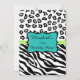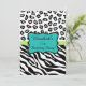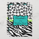 Personalize este sofisticado convite para um aniversário de 21 anos ou personalize para outro ano ou evento. A design apresenta faixas de zebra brancas e pretas e peles de leopardo ou de chita combinadas para uma design moderna. Um emblema azul-azul-azul-turquesa esboçado em preto senta-se num bar verde limão e cria uma área de personalização, com o nome e o evento que são fáceis de personalizar. O verso do convite inclui campos para todas as suas informações para um aniversário de 21 anos ou outro evento. Você pode facilmente alterar e excluir campos conforme necessário. As cores são brancas, pretas, turquesas e verdes limões. Peles de leopardo e zebra selvagens para design gráfica é uma das mais quentes tendências da arte e da design, e é extremamente popular. Coordene-se com outros produtos para um na moda.