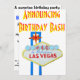 Para festas de aniversário da surpresa em Las Vegas, Nevada, este convite colorido travará a atenção de todos seus convidados convidados. A versão personalizada do sinal de boas-vindas famoso na tira inclui a idade. Mostrado aqui para aniversário de 40 anos, mas o modelo do texto pode ser personalizado para toda a idade.