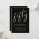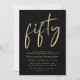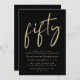 Chic black ITE para sua 50ª festa de aniversário com "cinquenta" em um roteiro de ouro na moda, seu nome em tipografia elegante da serifa de ouro e os detalhes da festa em simples e moderna inscrição em ouro.