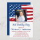 CONVITES DE ANIVERSÁRIO da bandeira americana. Convide amigos e família para a sua celebração patriótica de aniversário com estes convites modernos da bandeira americana. Personalize este convite da bandeira americana com seu evento, foto, nome e detalhes da festa. Veja nossa coleção para dar presentes patrióticos, favoritos para festas e suprimentos de aniversário. COPYRIGHT © 2021 Judy Burrows, Black Dog Art - Todos Os Direitos Reservados. Convite de aniversário American Flag Custom Photo 50th