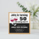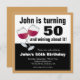 Este convite de aniversário 50º apresenta um gráfico de dois copos de vinho tinto e o texto engraçado: (nome) está fazendo 50 e ganhando com isso! O convite oferece texto personalizável para que você adicione os detalhes de sua parte. A cor de fundo é dourada e pode ser personalizada para qualquer cor disponível.