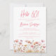 Simples convite de aniversário floral rosa 60º para uma festa de aniversário divertida. A idade pode ser alterada.