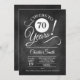 convite de aniversário 70 em preto e branco. Convites elegantes para festas de aniversário adulta. Funciona com a fonte Script e o padrão do quadro de referência. Saúde para 70 anos! Um convite de estilo retrô para a festa masculina. Pode ser personalizado para mostrar qualquer idade.