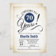 Convite de aniversário 70 no Marinho azul preto branco com fundo retrocremoso. Saúde para 70 anos! Pode ser personalizado em qualquer ano. Envie-me uma mensagem se precisar de mais personalização.