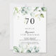 Este convite de aniversário de 70 verde de eucalipto com aquarela é perfeito para uma festa de aniversário rústica. Este design artístico apresenta uma cor aquosa, desenhada à mão, uma folhagem verde de eucalipto, inspiradora beleza natural.